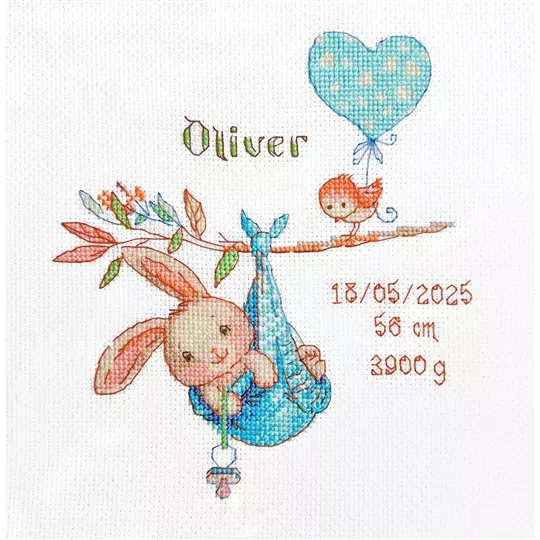 This counted cross stitch design from Aine contains Zweigart 14 count white aida fabric, Anchor stranded cottons, needle, colour chart including alphabet and instructions.