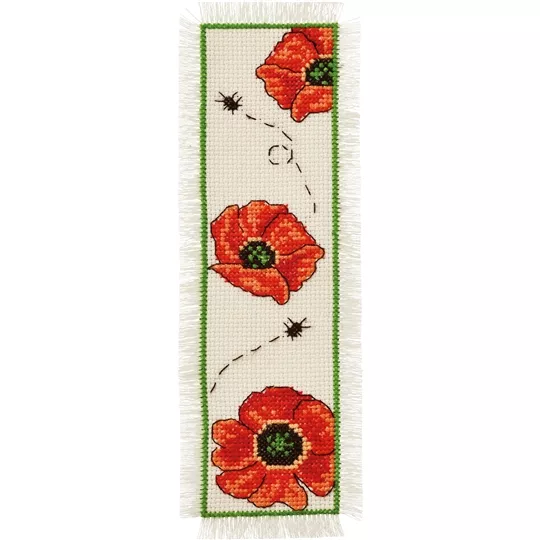 This counted cross stitch bookmark design from Permin of Copenhagen contains 14 count ecru aida fabric, DMC stranded cottons, needle, chart and instructions.