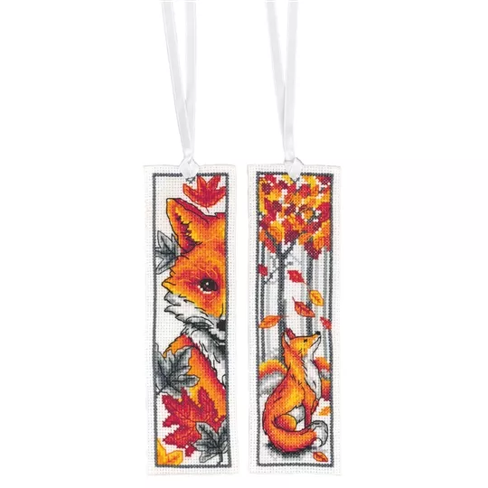 This counted cross stitch set of two bookmark designs from Vervaco contains 14 count white aida fabric, DMC stranded cottons, ribbon, needle, enlarged chart and instructions. Uses cross stitch and long stitch.