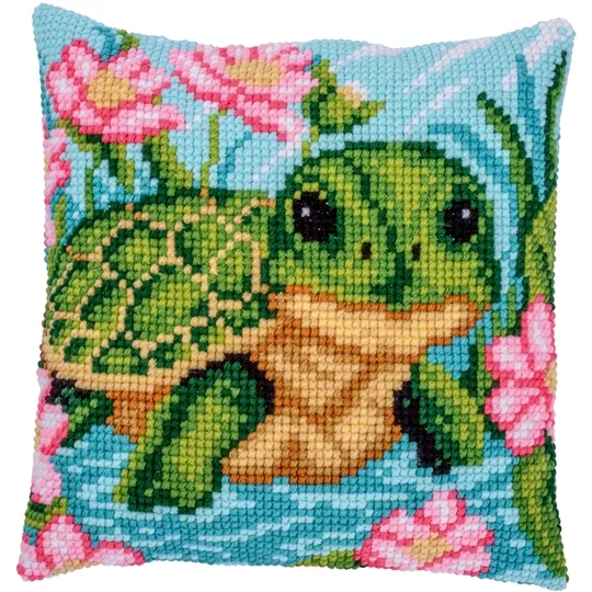 Vervaco Little Turtle Cushion Printed Cross Stitch Kit